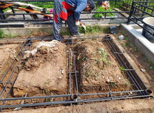 Выкапываем между захоронениями траншеи, между получившимся холмами ввариваем надёжный каркас в четыре арматурных кольца.